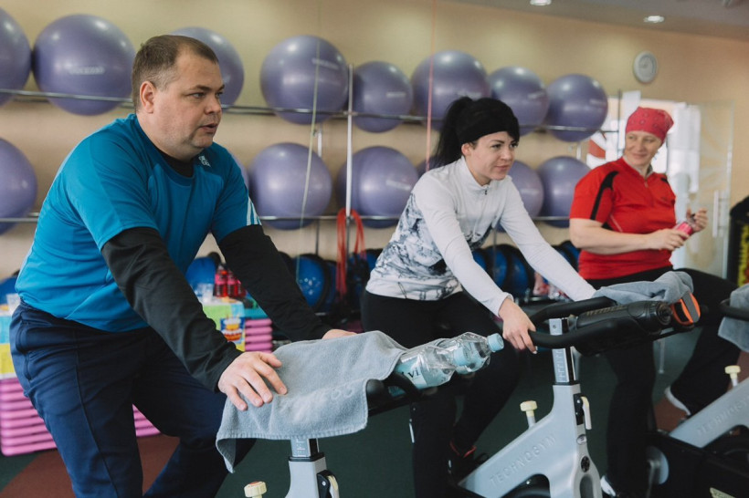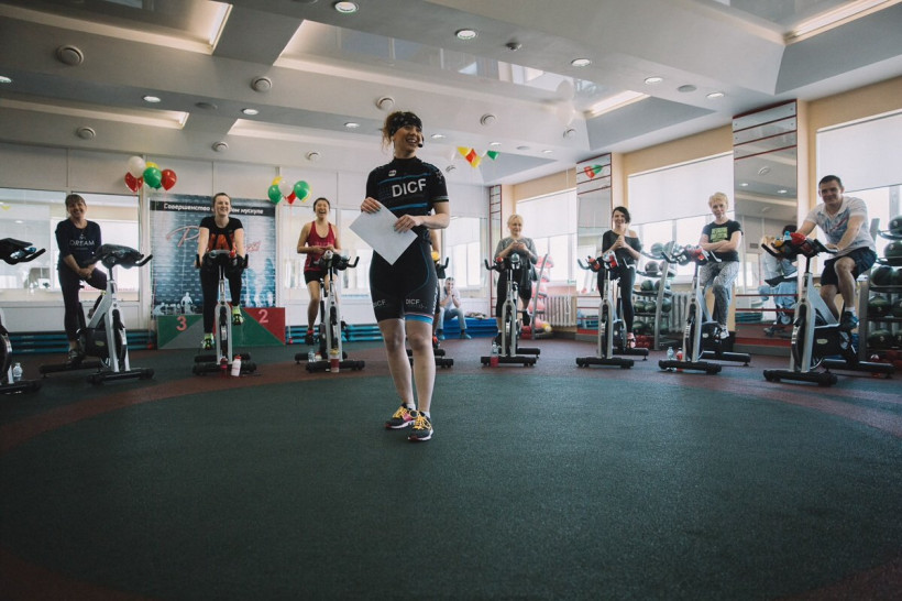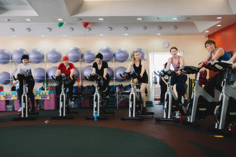 Они крутили педали и танцевали на велотренажерах в клубе «Платинум Фитнес»