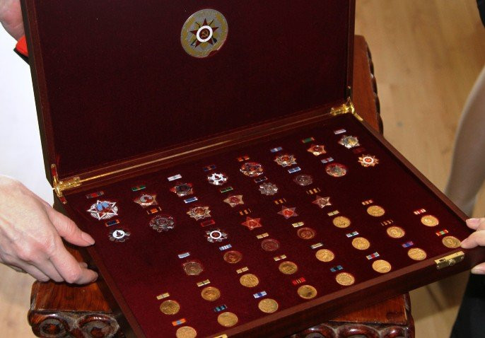 Подарок в виде памятного набора изображений госнаград, учрежденных в годы войны, накануне 9 Мая вручил директору Амурского областного краеведческого музея Елене Пастуховой и.о. губернатора области Александр Козлов. Будущий экспонат был преподнесен 8 мая во время торжественного открытия выставочного проекта «Эшелон памяти».