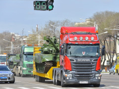 Выставка боевой техники открылась 8 мая в Благовещенске. Посмотреть на действующие танки и бронетранспортеры могут все желающие — машины будут стоять на площади Ленина в течение двух дней. Всего выставлено 26 единиц — это танки, БТР, БМП, автомобили и один бронированный многоцелевой тягач МТ-ЛБ. «Всю технику еще вчера на пяти тралах мы пригнали с полигона в училище, — рассказал АП начальник ДВОКУ Владимир Грызлов. — Сегодня с утра двумя рейсами на машинах привезли 10 единиц гусеничной техники (чтобы она не испортила дорожное покрытие), остальные пришли своим ходом». У каждой машины имеется табличка, на которой можно посмотреть назначение техники и изучить перечень ее характеристик. Смотрите фоторепортаж Андрея Ильинского.