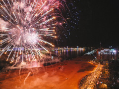 9 мая в честь 70-летия Победы в Великой Отечественной войне в небе над рекой Амур прогремели тысячи залпов уникального салюта (видео). Впервые российский город Благовещенск и китайский Хэйхэ запустили синхронный салют. Под аккомпанемент оркестра и хоровое пение в небо над рекой в течение семи минут взмывали пиротехнические заряды, разрываясь на разной высоте которые принимали вид хризантем, астр, пионов, водопадов и других форм. На российской стороне пиротехники расположились на намывной части набережной напротив фонтана. Фейерверк с китайского берега запускался в районе таможни Хэйхэ (напротив благовещенской улицы Пионерской). Такое расположение точек запуска позволило создать для зрителей 3D-эффект. АП благодарит ГК «САР» за помощь в организации съемок.