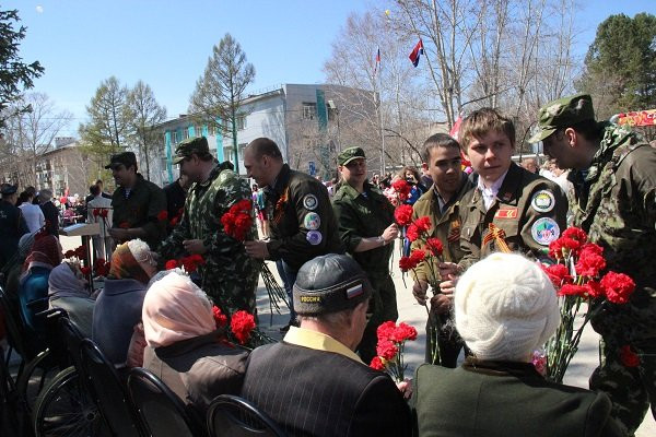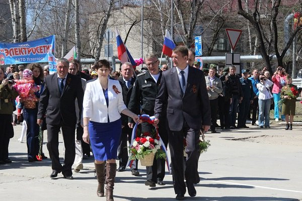 В течение майских праздников строительные работы на Восточном не приостанавливались. Сейчас главная задача строителей — завершить объекты пускового минимума. Для празднования Дня Победы сделали исключение — в нем приняли участие сотрудники всех подразделений стройки. На 9 мая на стройплощадку космодрома прибыли замдиректора Спецстроя России Александр Загорулько и руководитель предприятия «Спецстройтехнологии» при Спецстрое России Игорь Мельников, которые посетили Татьяну Смирнову, единственную жительницу ЗАТО Углегорск, которая принимала участие в Великой Отечественной войне.