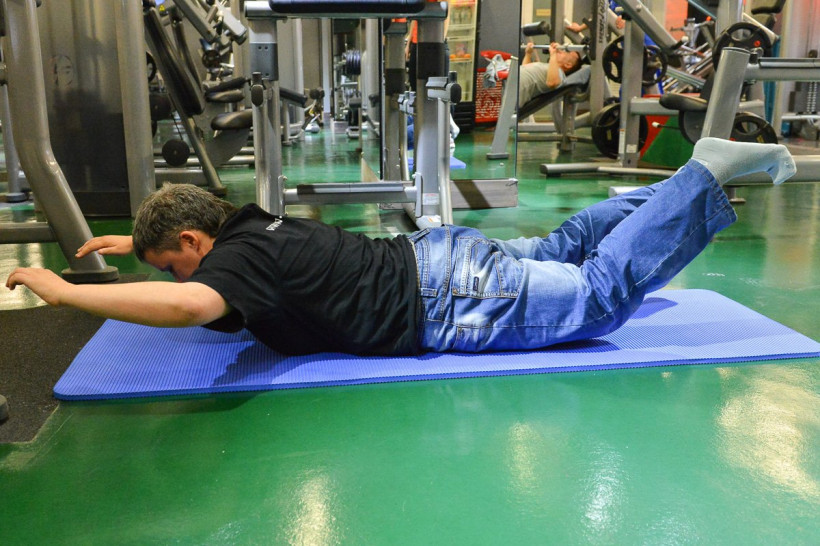 Необычное упражнение называется «Супермен», и не только потому, что укрепляет мышцы живота и спины, а еще и потому, что исходное положение напоминает этого супергероя — ложимся лицом вниз, руки на уровне плеч, слегка согнуты в локте, ноги разведены чуть шире плеч. На выдох сокращаем мышцы живота и одновременно поднимаем плечи и ноги. Это достаточно тяжелое упражнение, поэтому начинающие могут выполнить его 15 раз.