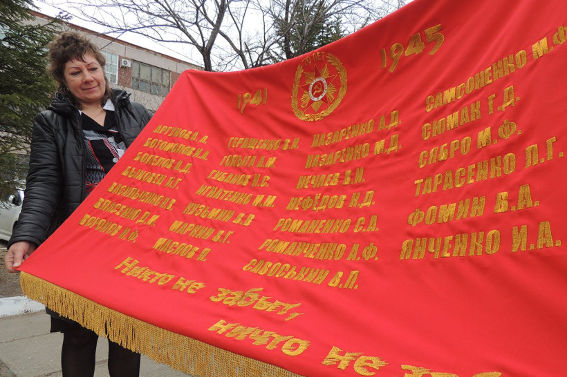 Дмитриевцы вышили имена погибших сельчан на Знамени Победы