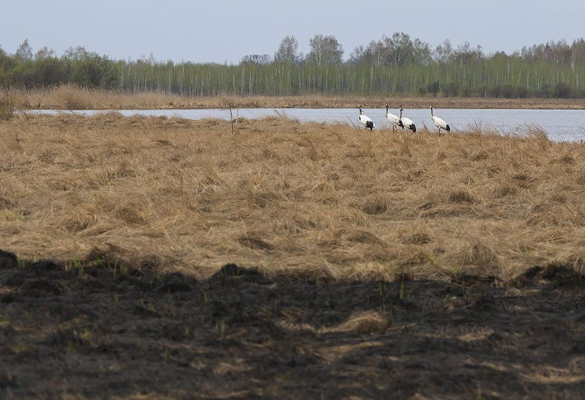Пожар в Хинганском заповеднике уничтожил гнезда краснокнижных аистов и журавлей. Фото