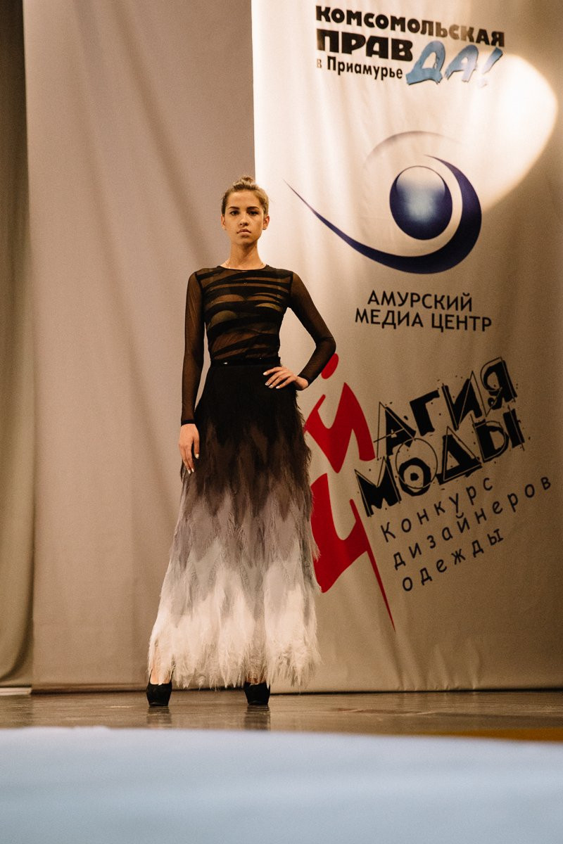 Всероссийский конкурс дизайнеров одежды «Магия моды» прошел 15 мая в Благовещенске. Молодые кутюрье (среди которых всего один мужчина) из Благовещенска, Тынды, Шимановска, Углегорска, Красноярска, Улан-Удэ, Нерюнгри, Хабаровска, Владивостока и Тюмени представили 38 коллекций. Перед зрителями дефилировали модели в одежде из меха, выбитой кожи, целофана, павлопасадских платков и воздушного шифона. Один дизайнер к большому удовольствию публики представил ватник с вышивкой. В итоге Гран-при «Магии моды — 2015» и главный приз — поездку в Москву на международный конкурс Благотворительного фонда «Русский силуэт» — завоевала Алина Депелян из Благовещенска с коллекцией «К свету». Приз зрительских симпатий у Виктории Мошонкиной и ее «Картин маслом». Фоторепортаж с показа — Сергея Лазовского.