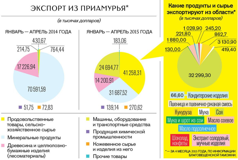 Экспорт из Приамурья и какие продукты и сырье экспортируют из области*– см. инфографику № 1