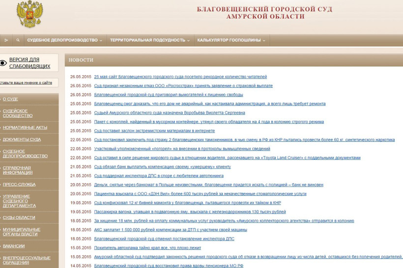 Благовещенский городской суд, признавший экстремистскими пять песен музыкальных групп «Коррозия металла» и «Коловрат», сообщил о рекордном количестве читателей своего сайта. Опубликованное решение суда прочитало почти 8 тысяч посетителей.