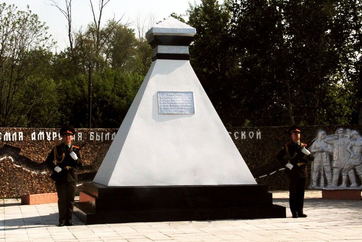 Сегодня возле монумента, воздвигнутого в Благовещенске в ознаменование этого события, состоялась торжественная церемония возложения венков и цветов.