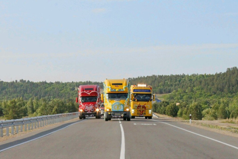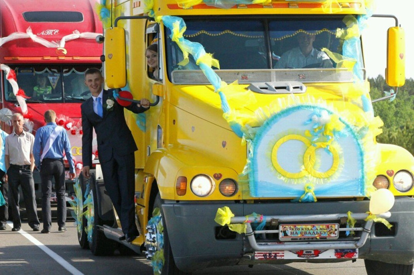 300 метров органзы, 120 метров ленты и более 200 шариков понадобилось молодоженам Василевским, чтобы украсить три американских тягача фредлайнера