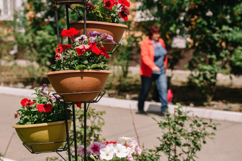 Розовые пионы, анютины глазки, алиссум, лобелия, гипсофила, ромашка, гортензия, петунья, лилии, ирисы, дицентра ( так называемое «разбитое сердце») — это еще не полный перечень цветов, которые растут на большой территории Амурской областной детской клинической больницы. Каждый год на клумбах и цветниках появляются новые виды растений — в этом году возле административного здания на квадратной клумбе-«лесенке» зацвели бегонии. Не смотря на то, что это комнатное растение, на улицу оно прекрасно прижилось и уже распустилось. Кто ухаживает за цветниками в детском учреждении здравоохранения и что нужно, чтобы вырастить шикарные розы, в материале АП.