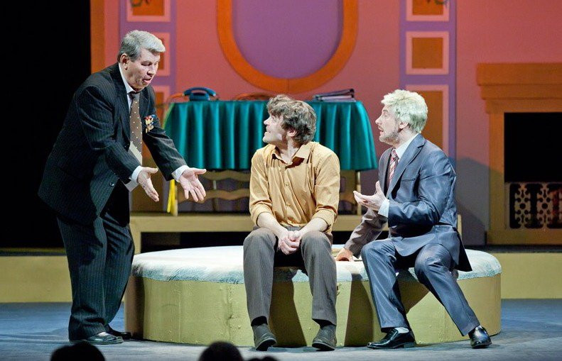 14 июня Хабаровский театр драмы завершил гастроли в Благовещенске. За десять дней артисты сыграли девять спектаклей: комедии, детские сказки и даже мелодраму по пьесе украинского классика Ивана Франко. Но, пожалуй, главным козырем труппы стала постановка «Козленок в молоке» — инсценировка романа редактора «Литературной газеты», писателя и драматурга Юрия Полякова. Написанное в 1995 году, произведение сразу же стало популярно, а уже в 1999-м режиссер Эдуард Ливнев поставил его в московском театре имени Рубена Симонова. Спектакль-памфлет 15 лет не сходил со столичной сцены — вплоть до самого закрытия театра в январе 2015 года. Тогда все тот же Ливнев, за это время снявший несколько серий ситкомов «Моя прекрасная няня» и «Большие девочки», перенес роман Полякова на сцену Хабаровска. Премьера социально-политической комедии состоялась в минувшем марте, а теперь с нашумевшей историей познакомились и благовещенские театралы.