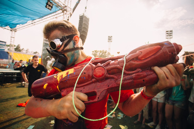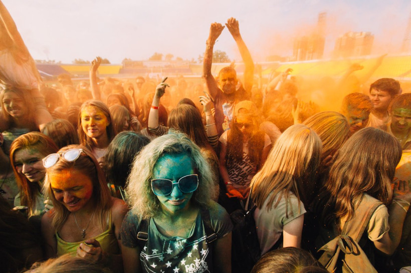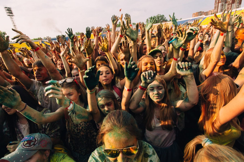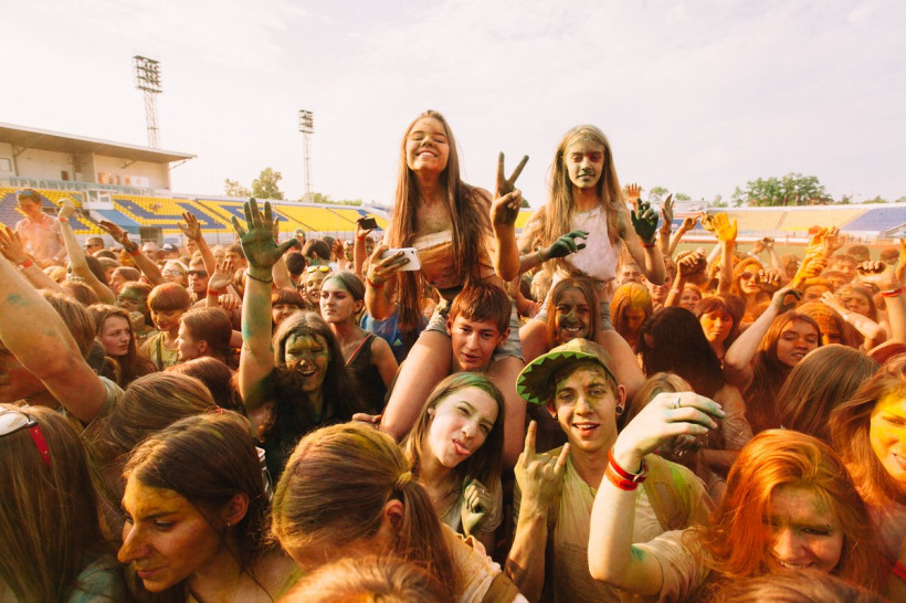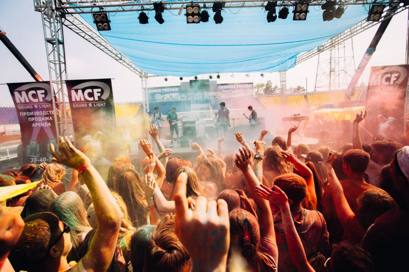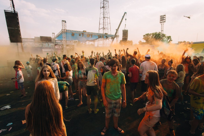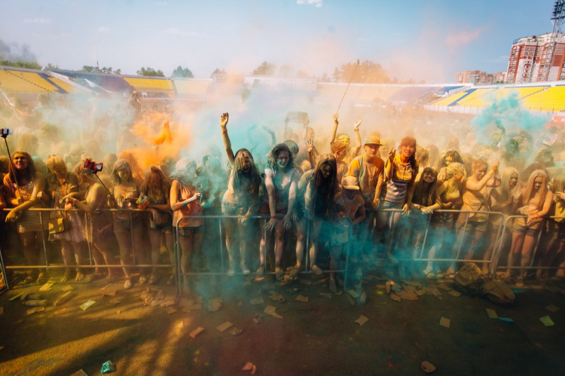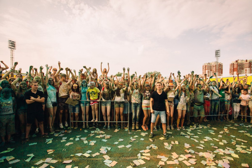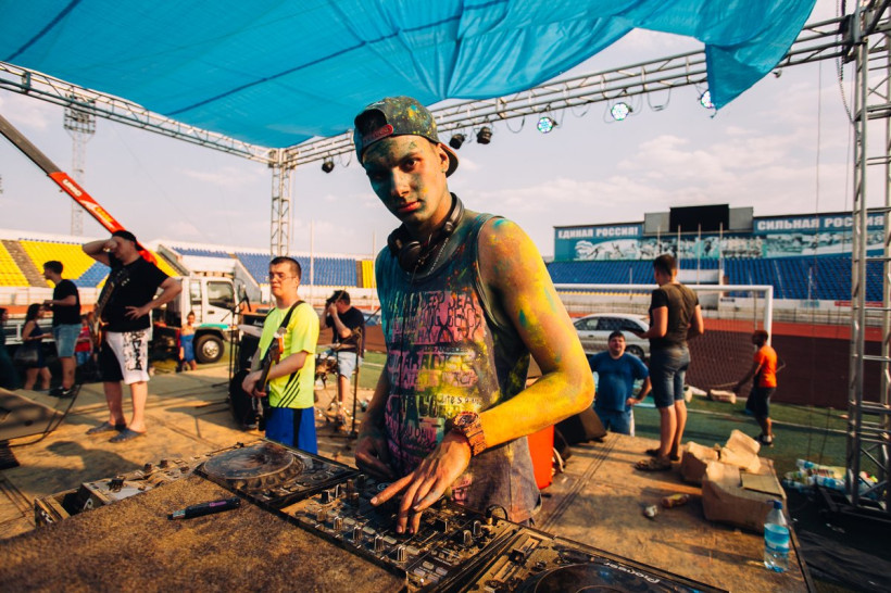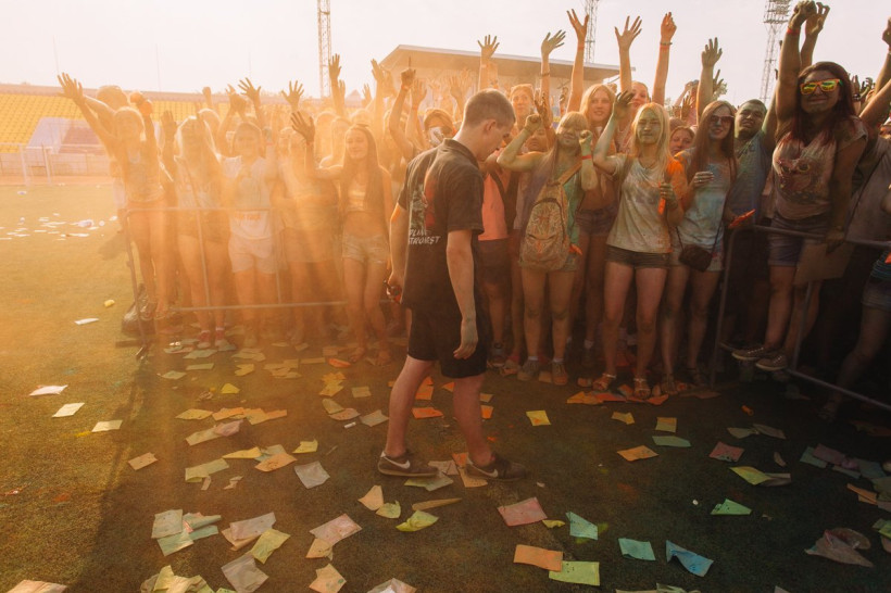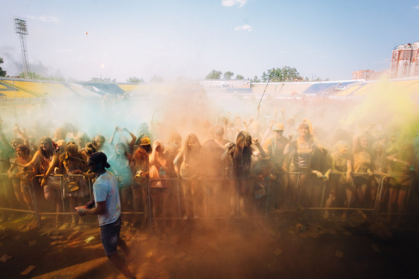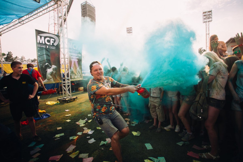 На амурчан высыпали тонну индийской сухой краскиНа стадионе «Амур» Благовещенска 19 июня было жарко и ярко. Здесь проходил второй фестиваль красок Холи. Специально для мероприятия организаторы привезли тонну индийской сухой краски. Фестиваль начался в два часа с первого массового выброса порошка, раскрасившего в цвета радуги всех, кто не успел испачкаться в краске самостоятельно. Потом массовые выбросы повторялись каждый час. В перерывах между ними на сцене выступали диджеи и рок-группы, для зрителей проводились различные игры и конкурсы.