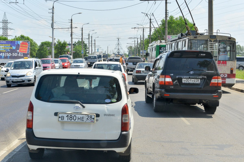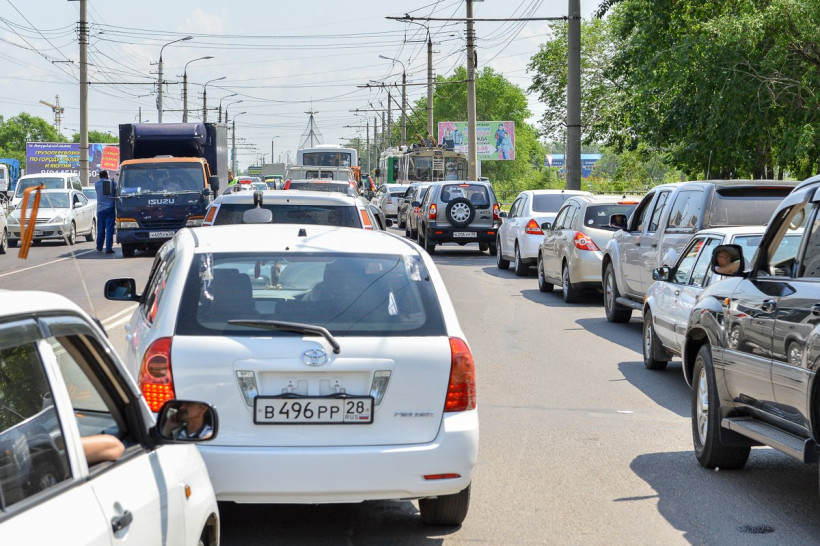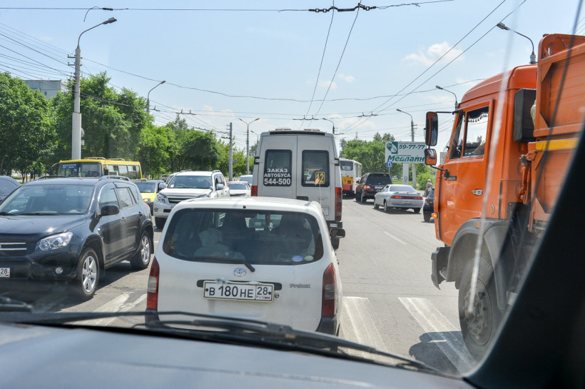 В микрорайоне Благовещенска образовалась пробка в несколько кварталов