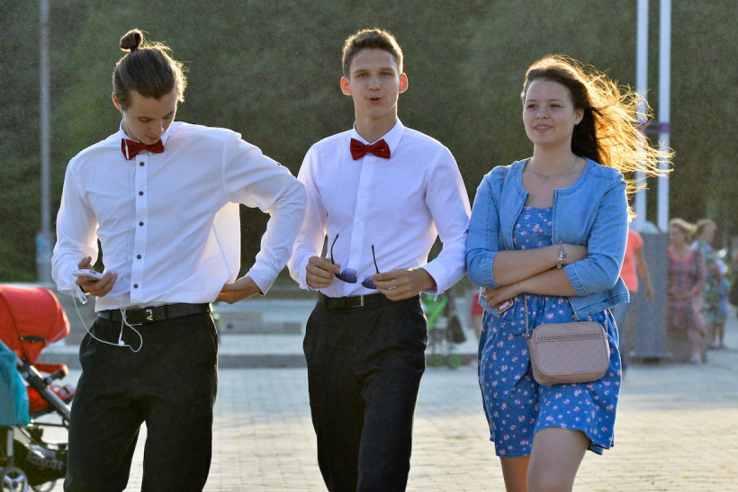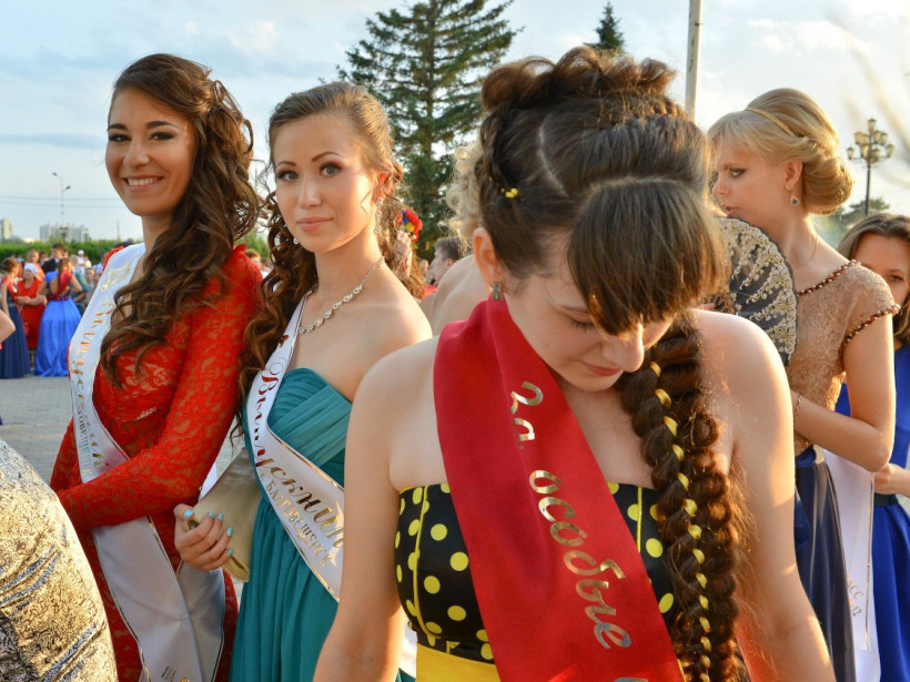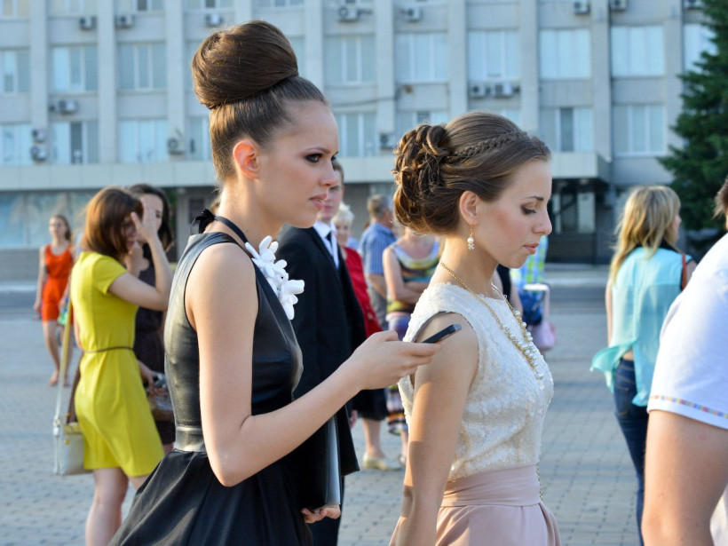 Школьницы демонстрировали вечерние платья и делали селфи