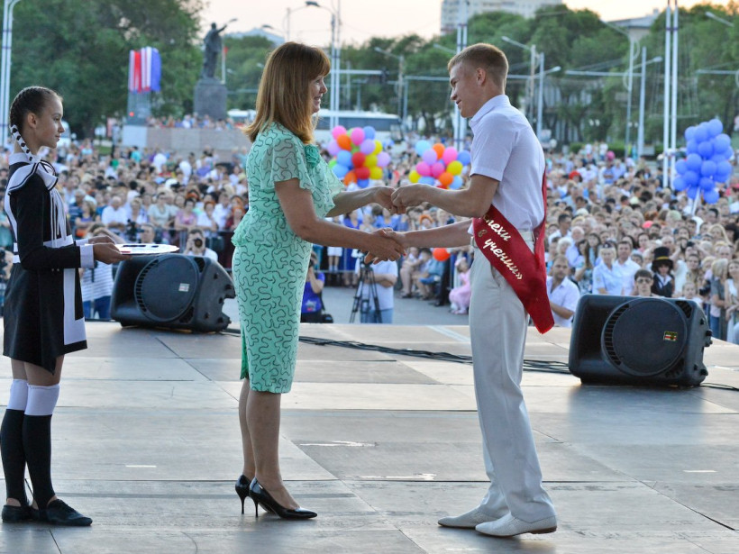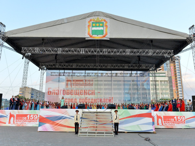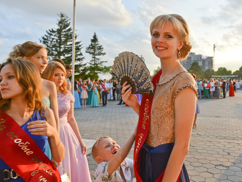 Торжественная линейка прошла 27 июня на площади имени В. И. Ленина в Благовещенске. Выпускной собрал 975 благовещенских школьников. С окончанием школы нарядных и счастливых выпускников поздравили первые лица области и города, педагоги, родители. Здесь же прошло вручение аттестатов с отличием, награждение медалями «За особые успехи в учении». Шестеро вступающих во взрослую жизнь благовещенцев получили новый грант «За активную жизненную позицию». Его утвердил в 2014 году экс-мэр города, нынешний глава Приамурья Александр Козлов. За благовещенскими выпускниками и выпускницами наблюдал фотокорреспондент Андрей Ильинский.