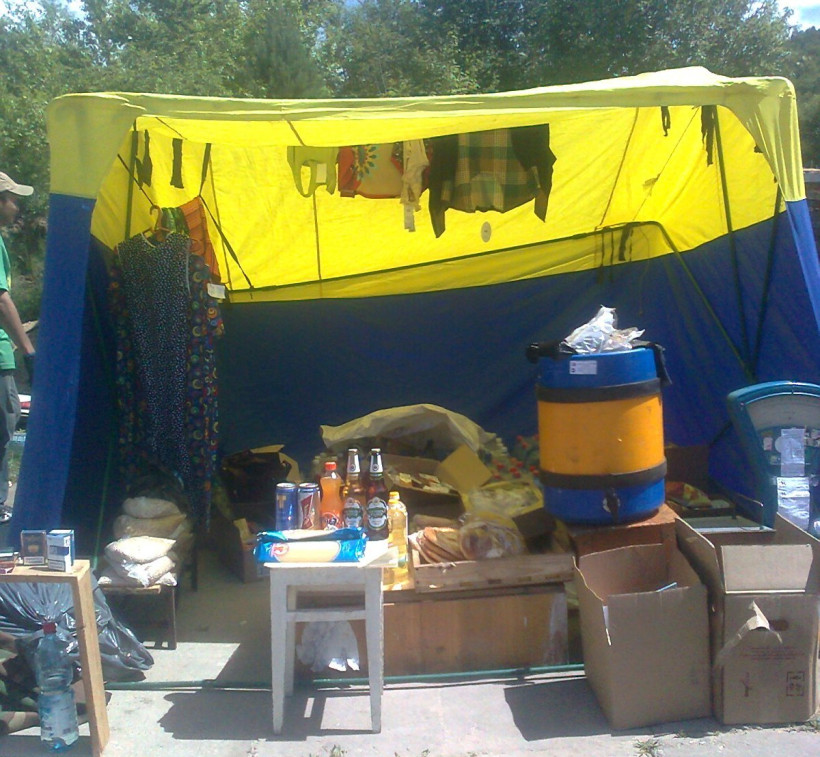 — Мы не торгуем на улице продуктами, которые нужно хранить в холодильниках. Продаем только то, что можно, ассортимент маленький, конечно: хлеб, вода, сигареты, консервы, чипсы, лапша, только такое, — пояснила продавец магазина. — Соорудили прилавки на улице. Погода жаркая, тяжело тут весь день без кондиционеров. Но работать надо, пенсионеры приходят, спрашивают хлебушек.