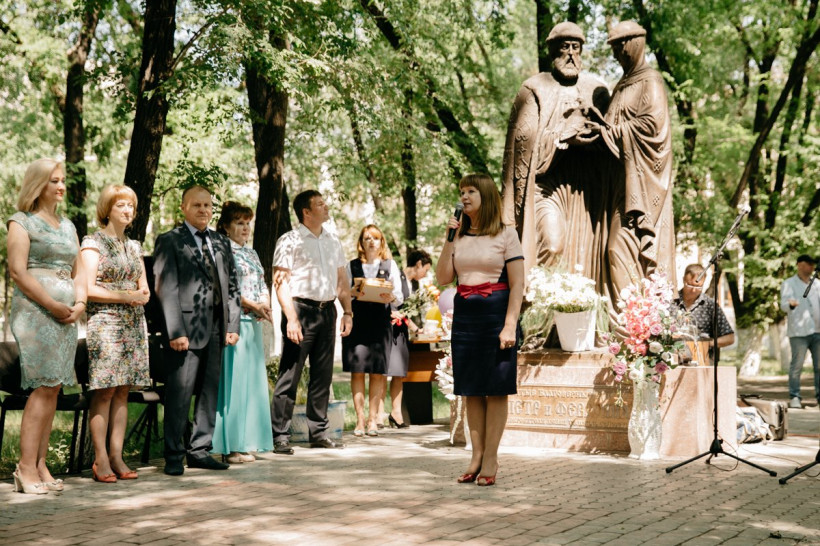 В День любви, семьи и верности в амурской столице вручили 11 медалей «За любовь и верность». По всему Приамурью — 72 медали. По одному памятному знаку на двоих получили шесть пар из Благовещенска и еще пять из Белогорского, Благовещенского, Тамбовского и Ивановского районов. Для виновников торжества организовали банкет на улице перед городским Дворцом бракосочетания, здесь же они танцевали под живую музыку. 8 июля, в День памяти Петра и Февронии в амурских загсах решили пожениться 62 пары, в Благовещенске — 38. Среди молодоженов оказались и заместитель генерального директора «Амурской правды» Анна Репина и Алексей Кротов, узаконившие сегодня свои отношения. Они стали 1 195-й парой, зарегистрированной с начала года в Благовещенске. Коллектив АП от всей души поздравляет молодоженов!