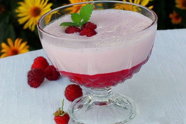 Лимонный сок — 3 ч. л., молоко — 100 мл, сливки жирностью 9% — 5 ст. л., малина — 200 г, сахарная пудра — 4 ч. л., ряженка — 200 мл.