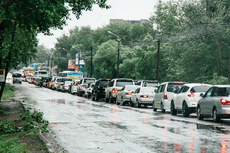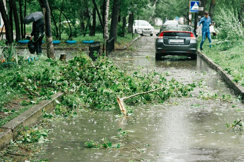 Поваленные деревья перекрыли движение транспортаЦиклон, который в выходные принес сильный ветер и ливни в Амурскую область, вечером 13 июля добрался до Хабаровского края. Из-за стихии некоторые районы остались без электричества, кроме того, ветер повалил деревья.
