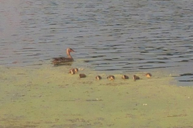 К сожалению, предыдущая пернатая жительница пруда и ее птенцы не смогли выжить в городе. Нет, корма в прудах им хватало. Их погубила человеческая жестокость. Птицу с малышами забросали камнями благовещенские подростки.