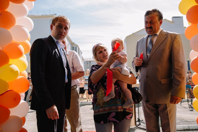 За полчаса до начала торжественного открытия у бело-зеленого дома с украшенным воздушными шарами подъездом уже собрались будущие новоселы, их родные и друзья. Во двор подтягивались и жители из соседних домов, сдавшихся в прошлом году. Общее приятное волнение не затронуло только игравших во дворе детей и местного кота, важно перешедшего тропинку прямо перед подходившим к дому главой области.