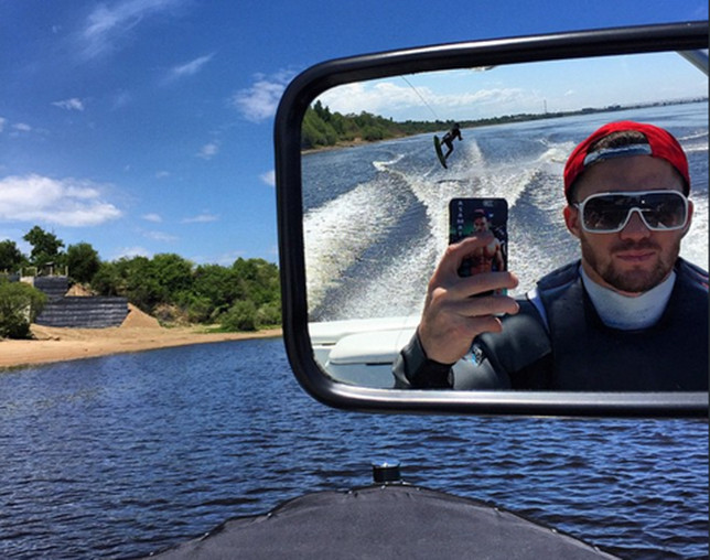 Недавно он разместил на своей странице селфи на фоне вейкбордиста.