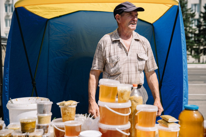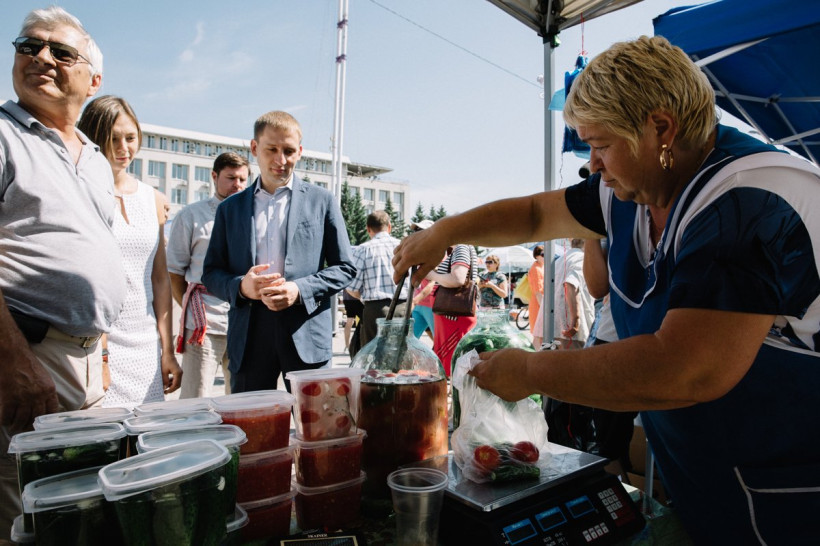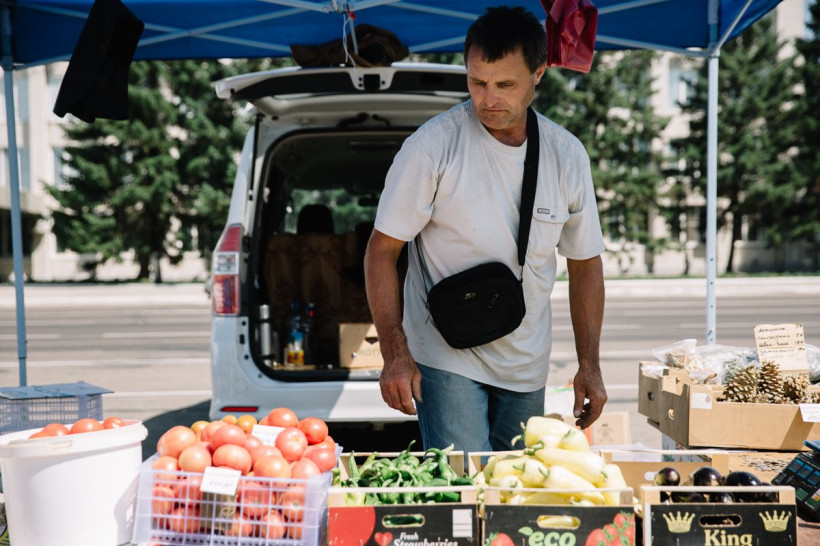 Сегодня в Благовещенске на центральной площади открылась сельхозярмарка. Фермеры из городов и районов выложили на прилавки огурцы, капусту, мед, вишню, мясо, свежевыловленных карасей, березовые веники и даже шишки. В открытии ярмарки принял участие и.о. губернатора Александр Козлов и и.о. мэра Валентина Калита. Александр Александрович с женой прошли между прилавками и выбрали домашние соленья и свежие овощи. Среди покупателей было немало китайских туристов, который активно покупали амурскую ягоду, мед и фотографировались у палаток. Ярмарки на площади будут проходить каждую субботу до 3 октября с 8 до 15 часов.