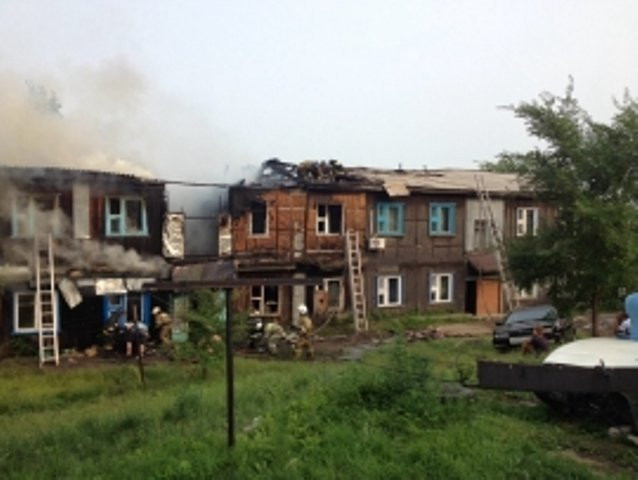 Жилую двухэтажку в Благовещенске тушат три десятка пожарных