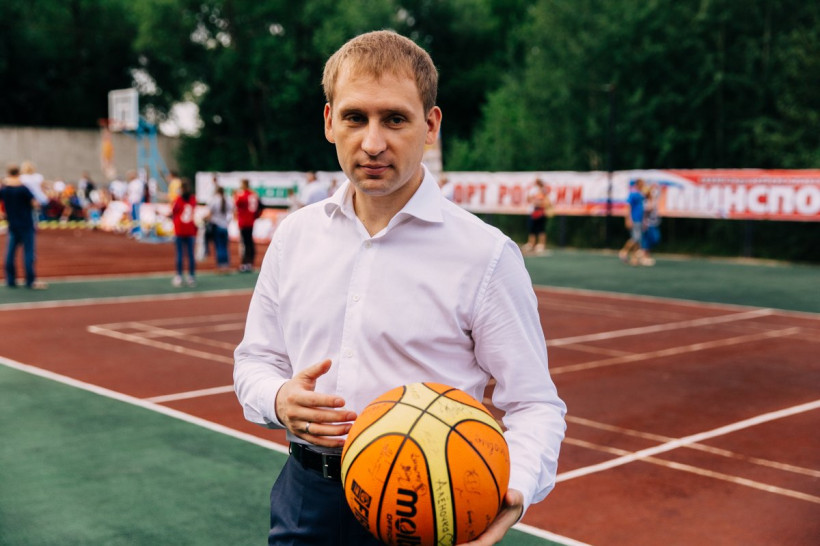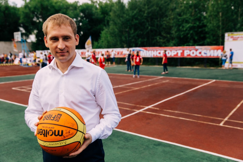 До официального открытия и. о. губернатора Амурской области Александр Козлов пару раз закинул мяч в кольцо, кстати, попал и остался этим очень доволен.