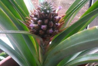 «Друзья привезли заморский фрукт. Решил попробовать вырастить и его. Традиционные растения не так интересно выращивать, как непривычные нам, — рассказывает Денис. — Мякоть плода съели, крышечку оставили. Сперва проращивал ананас в течение месяца в блюдечке, потом посадил в цветочный горшок, в землю. Поливал, подкармливал. Три года ухаживал, как за ребеночком. Не так давно растение зацвело — выпустило стрелку, затем появилась пирамида из фиолетовых цветочков. Жду плоды. Читал, что плодоносить ананас начинает на четвертый год жизни».