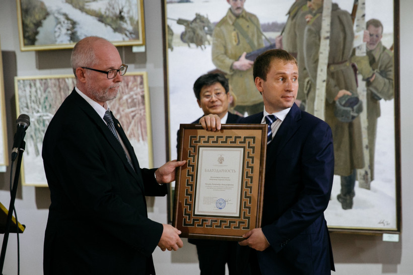 За поддержку и содействие развитию изобразительного искусства региона и расширение международных, культурных связей главе региона вручили благодарность. Ее дало региональное отделение Урала, Сибири, и Дальнего Востока Российской академии художеств.