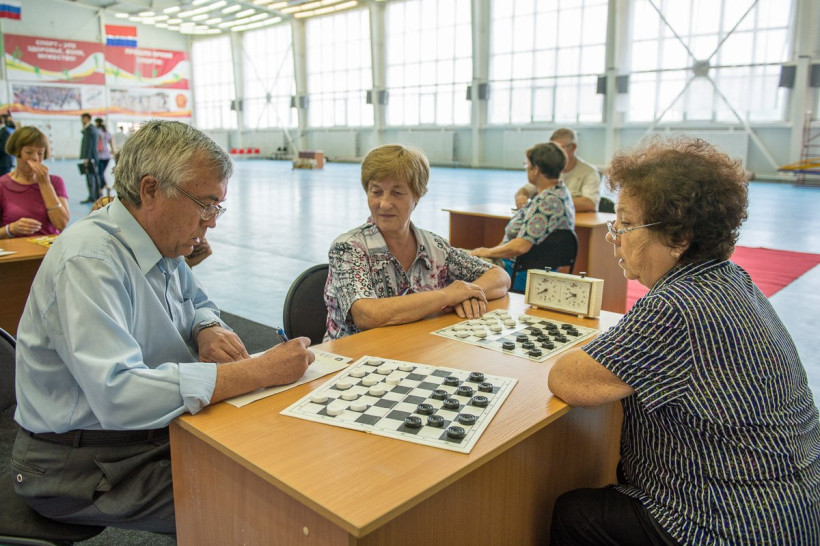 Шестая спартакиада пожилых людей прошла сегодня в Благовещенске на стадионе «Юность» , где в общей сложности собралось более 80 спортсменов. Для участников установили возрастной ценз: для мужчин — старше 60 лет, для женщин — старше 55 лет. Самому пожилому спортсмену уже исполнилось 80 лет. Пенсионеры соревновались в семи видах спорта. Участники сразились в шашки, шахматы, городки, сыграли в настольный теннис и дартс, стреляли из пневматической винтовки и пробежали эстафету — мужчины одолели дистанцию в 400 метров, женщины — в 200. Спартакиада была приурочена к Дню флага, отмечаемому сегодня в стране. Поздравить участников с открытием соревнований и с государственным праздником пришли и. о. губернатора Александр Козлов и мэр Благовещенска Валентина Калита. Победители городской спартакиады примут участие в областных соревнованиях, которые пройдут в начале сентября. А лучшие из лучших будут представлять Приамурье на всероссийских состязаниях.