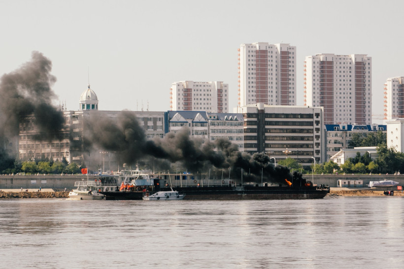 На реке Амур во время международных учений потушили корабль (видео)
