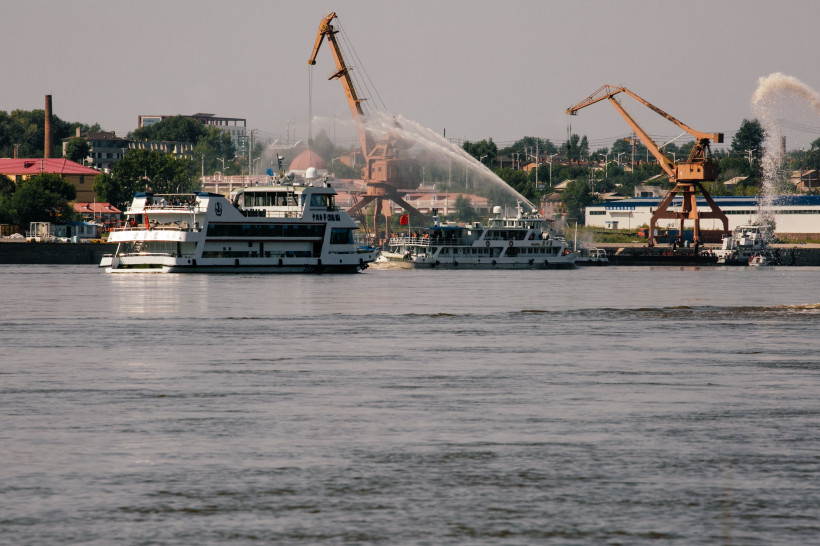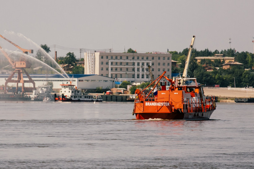 Сегодня, 26 августа, на реке Амур в Благовещенске российские и китайские спасатели провели международные учения. В них поучаствовали около 200 человек. По замыслу, судно с китайскими туристами село на мель и получило пробоину. Капитан корабля сообщил о происшествии в Хэйхэское управление морской безопасности. Прибывшие китайские специалисты эвакуировали людей. Но в это время на судне загорелись нефтепродукты, разлившиеся при аварии. Экипажу угрожала смертельная опасность и он покинул корабль. За помощью китайская сторона обратилась к амурским спасателям.