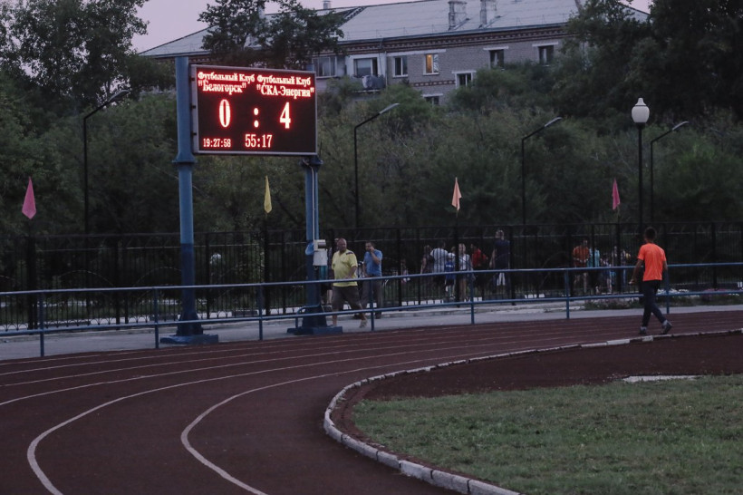 В Белогорске сегодня, 27 августа, прошла 1/32 финала Кубка России по футболу. На поле встретились любительский клуб «Белогорск» и команда первой лиги «СКА-Энергия» из Хабаровска. В первом тайме ни одной из команд не удалось открыть счет. Но во втором хабаровчане не оставили шансов хозяевам поля. Один за другим мячи оказались в воротах белогорского клуба. Завершился матч со счетом 4:0 в пользу гостей. Подробный фоторепортаж со стадиона здесь, видеорепортаж — тут.