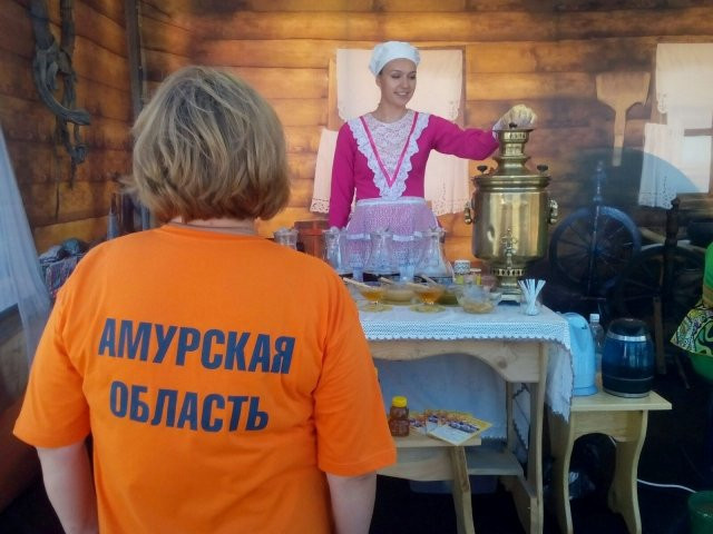 Павильон региона посвящен важным вехам в истории Приамурья. Начинаются они еще с Албазинского острога и заканчиваются космодромом Восточный. Посетителям рассказывают, что Албазино было первым на Дальнем Востоке населенным пунктом, где поселились русские люди. В то же время Приамурье – регион ДФО, откуда вскоре начнется освоение космоса.