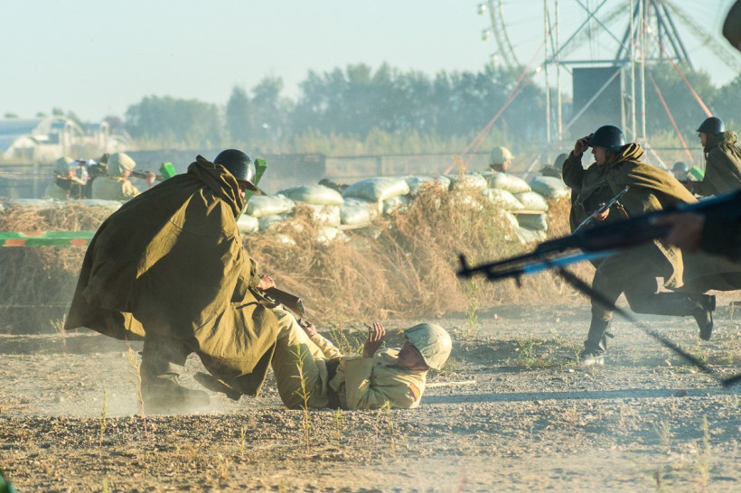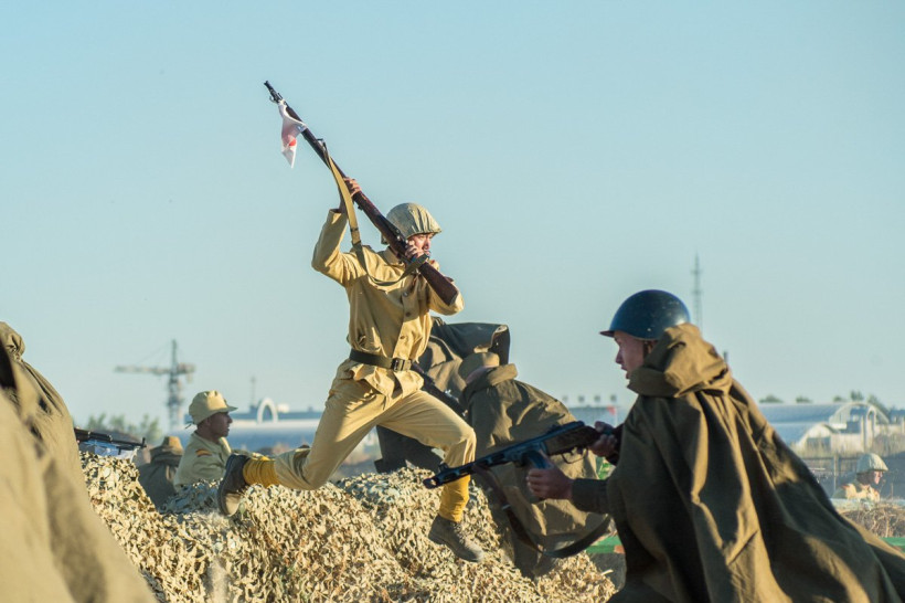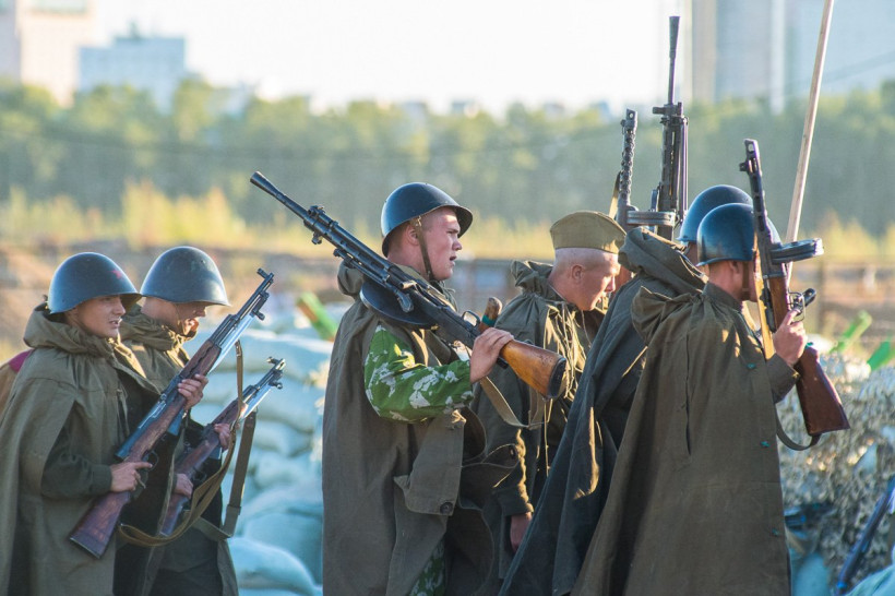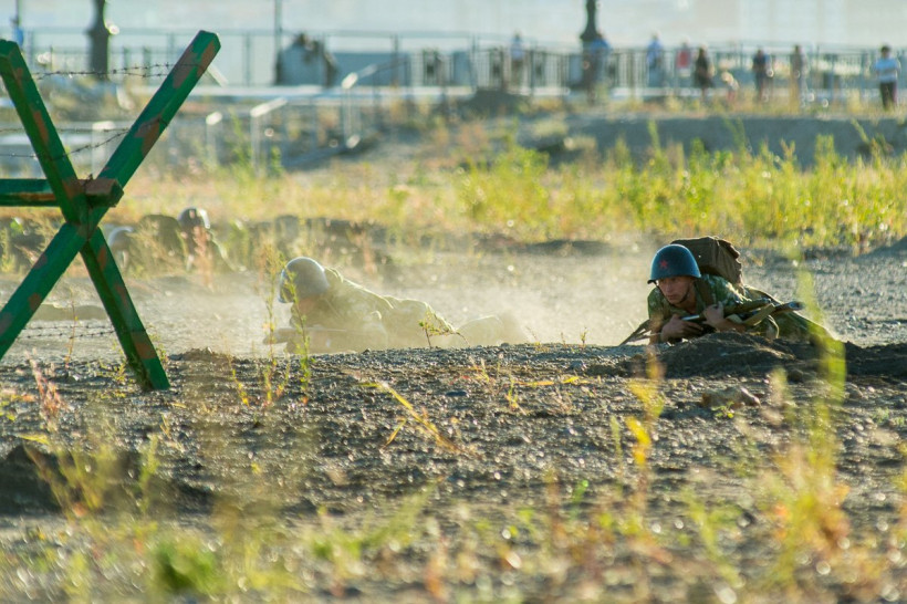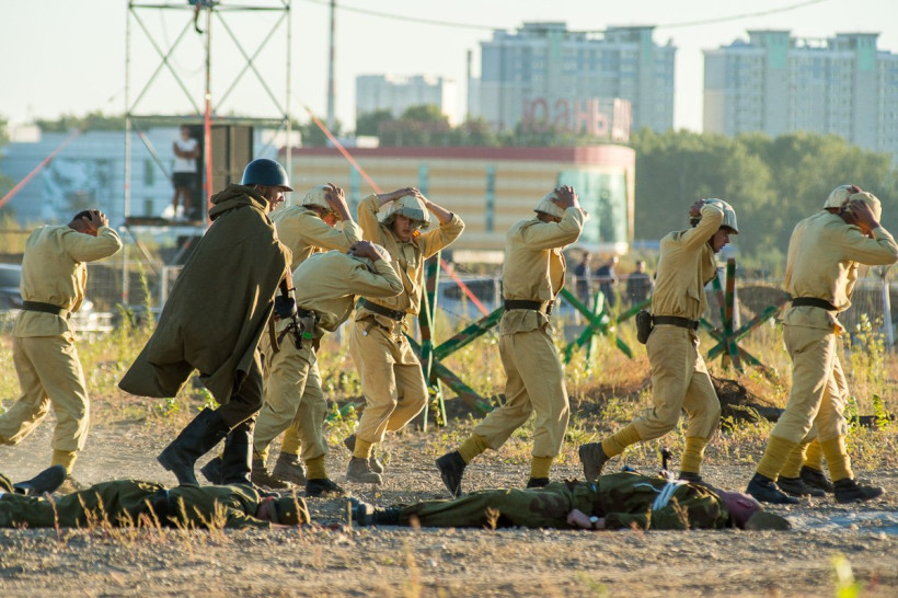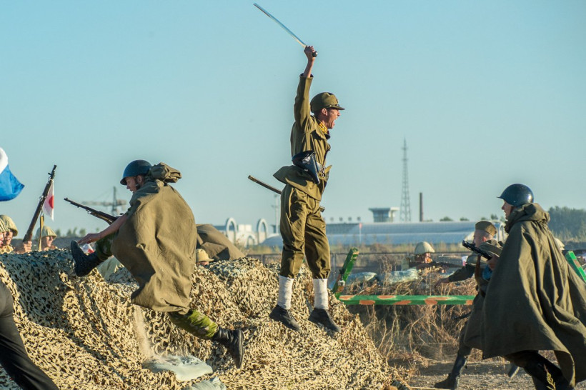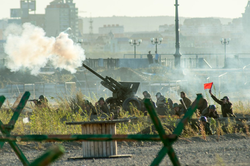 Выстрелы, взрывы и крики «ура» раздавались в центре Благовещенска сегодня вечером 2 сентября. На берегу Амура в районе площади Ленина прошла историческая реконструкция боя советских и японских войск на территории Китая. Ровно в 18 часов над площадью закружил самолет и высадился советский десант. Бой со стрельбой, взрывами и даже авиаобстрелом начался. За полчаса советская армия сломила сопротивление японцев и одержала убедительную победу. Необычное зрелище привлекло не менее двух тысяч зрителей — для всех желающих на набережной Амура даже не хватило места. За историческим боем наблюдал наш фотокорреспондент Андрей Ильинский.