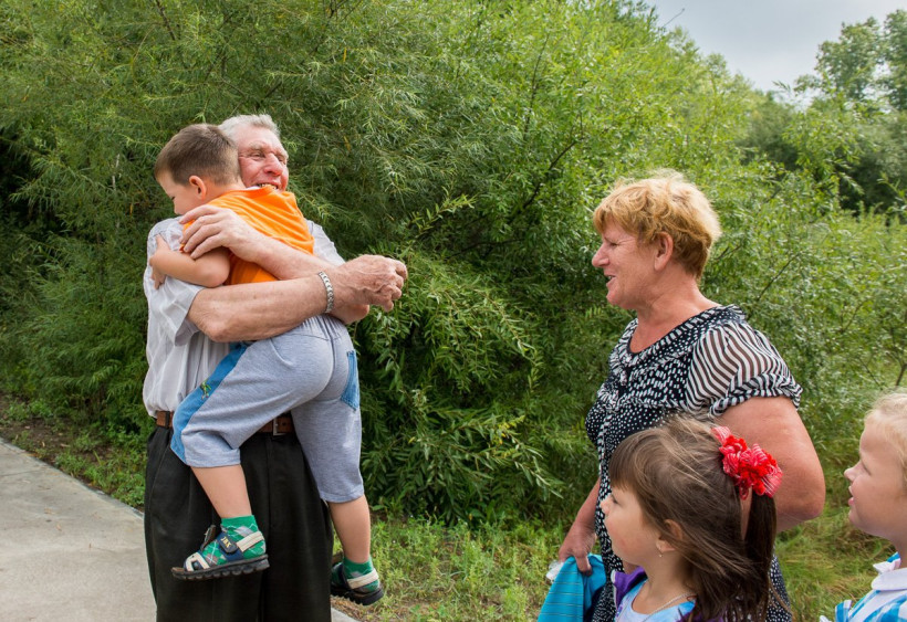 Ус оглянулся, и его лицо засветилось каким‑то особенно теплым светом. Он присел на колени, чтобы поговорить с малышней. Один из мальчиков вдруг запрыгнул к нему на руки и обнял как родного дедушку.