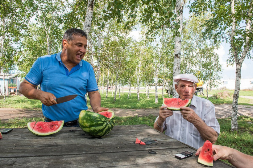 Вместе мы прошлись вдоль поля, обсуждая виды на урожай. «По картофелю, если свои затраты соберем, то хорошо. Арбузов мало. Четыре месяца не было дождя, неделю назад первый прошел, но уже поздно — ботва постарела», — сокрушался хозяин фазенды. Хакбердиев — единственный амурский фермер, кто занимается разведением индюков. Плюс еще куры, гуси, утки, кролики, кони, овцы, свиньи. В прошлом году выиграл грант «Семейная ферма», купил 100 телок мясного направления, они принесли 80 телят.