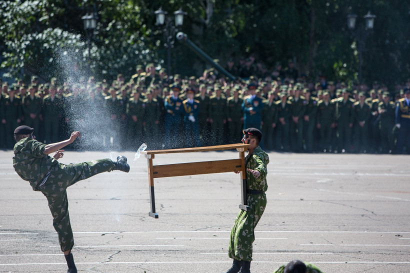 Сегодня в ДВОКУ были слезы, крики и массовые увольнительные — в одном из лучших военных вузов страны принимали присягу первокурсники. Посмотреть на это съехались люди из разных регионов России — родственники будущих офицеров как могли поддерживали своих мальчишек, ведь из 1 000 подавших документы только 237 смогли пробиться к заветным местам. Как проходило посвящение в воины, которое перемежалось выстрелами, взрывами и прыжками с парашютами, смотрите в фоторепортаже Игоря Агеенко.