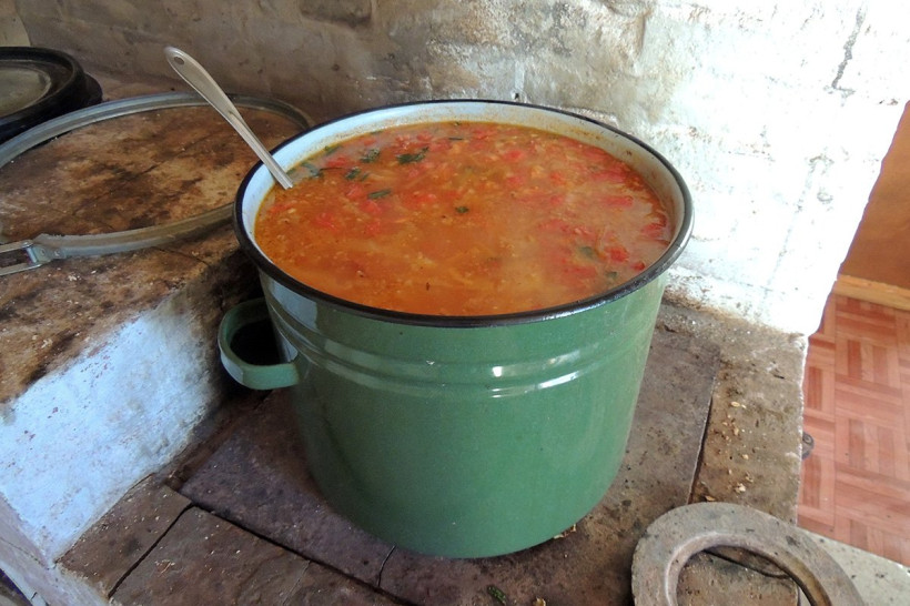 Соседям объяснили, что амурские велотуристы пропагандируют здоровый образ жизни. Тем не менее гости снарядили своих гонцов в местный магазин. Огромный бачок борща уплели за обе щеки.
