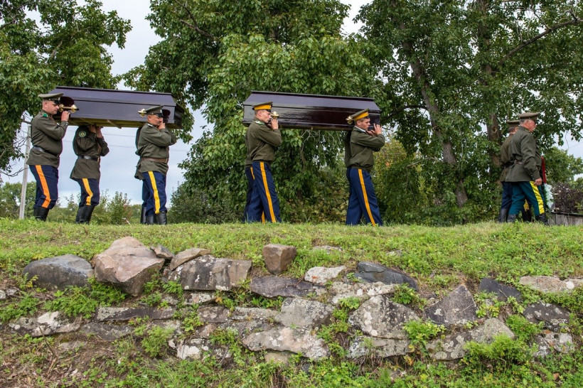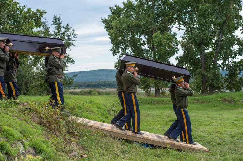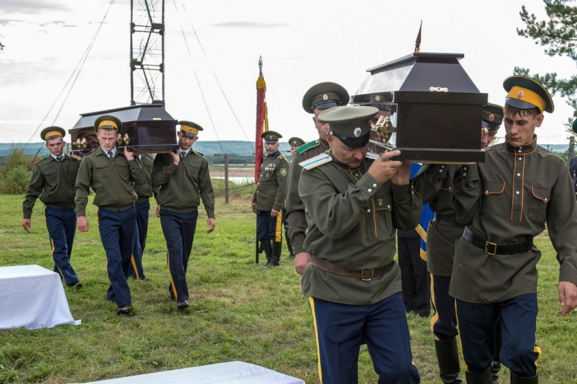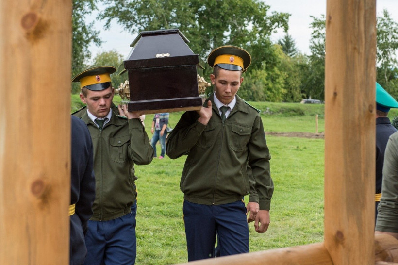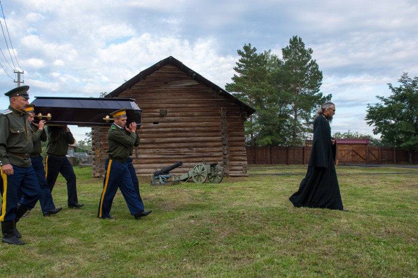 Сегодня, 5 сентября, в 18.00 в часовне Албазинской божьей матери в Албазине прошло отпевание останков 70 защитников Албазинского острога, павших при обороне крепости от маньчжуров в 1686-1689 годах. Службу провел настоятель Албазинского и Магдагачинского приходов игумен Игнатий. На церемонии присутствовали ученый секретарь Фонда «Петропавловск», руководитель «Албазинской экспедиции»Андрей Черкасов и антрополог Денис Пежемский, восстановивший облик одного из защитников. Нести два гроба с фрагментами тел амурских первопроходцев доверили курсантам казачьего колледжа из Константиновки.