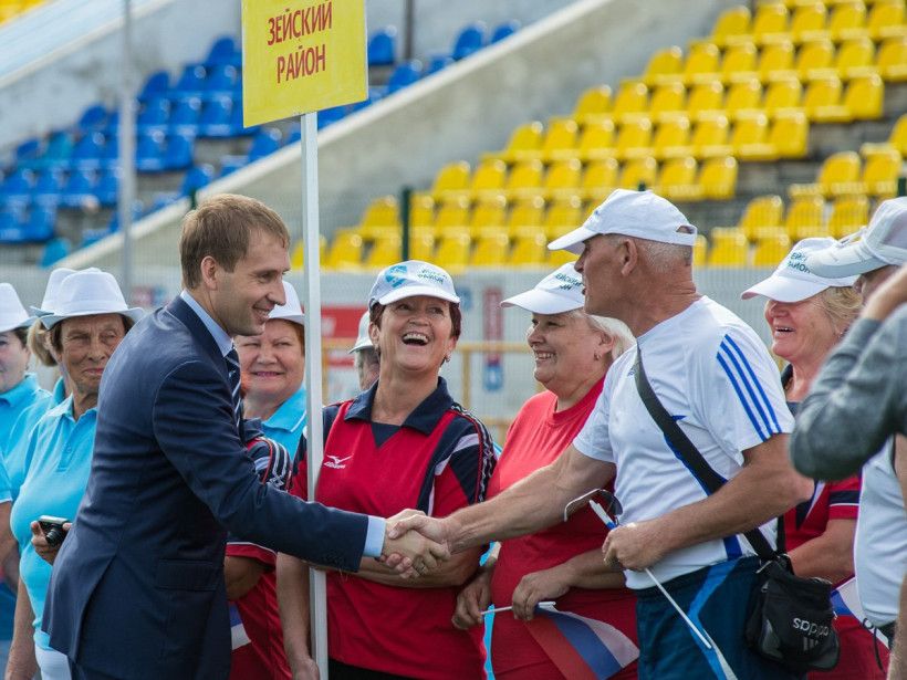 После своей речи Александр Александрович покинул трибуну и отправился к строю участников спартакиады. Глава области пожал руку всем капитанам и сфотографировался с членами каждой команды.