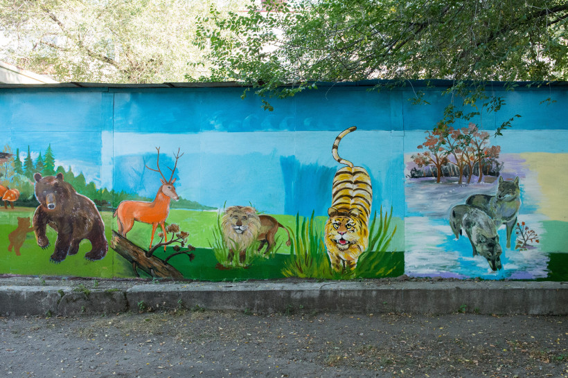 Дворник в Благовещенске рисует на заборах амурских тигров, медведей и лошадей