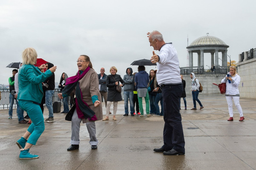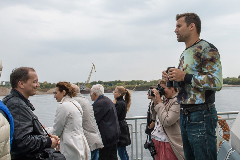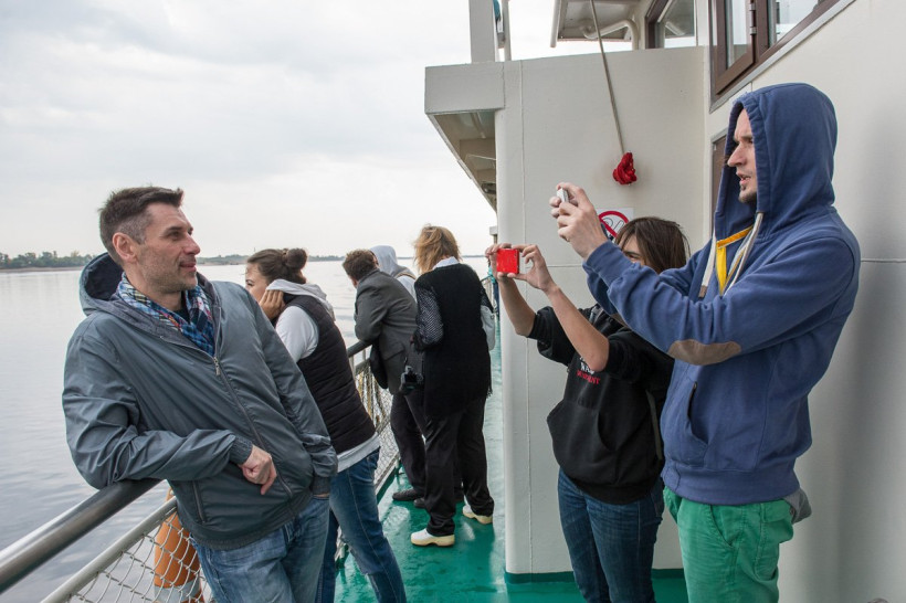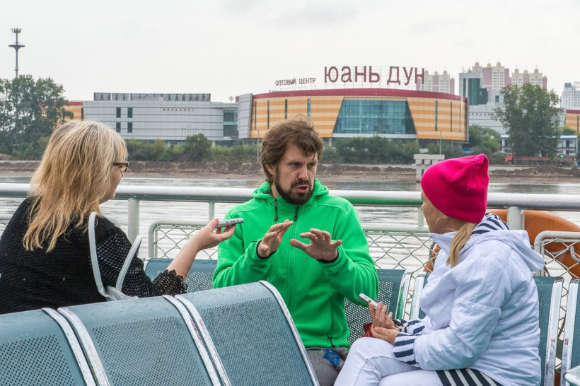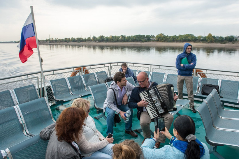 Около ста участников «Амурской осени», несмотря на накрапывающий дождь, покатались сегодня на теплоходе по Амуру и Зее. Уже на обновленной набережной, чтобы согреться, звезды устроили танцы. «Зажигательное танго под дождем исполнили грузинский актер Гиви Сихарулидзе и Елена Борзова, а после к ним присоединилась народная артистка России Раиса Рязанова, — с места событий сообщила наш корреспондент Варвара Сиянова. — На теплоходе танцы и песни продолжились. Кроме этого, участники фестиваля вдоволь нафотографировались на фоне китайского и российского берегов и пришли к однозначному выводу, что наша набережная выглядит намного лучше заречной». Вместе со звездами театра и кино на теплоходе мерз и фотокорреспондент «Амурской правды» Андрей Ильинский.