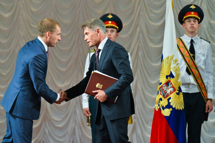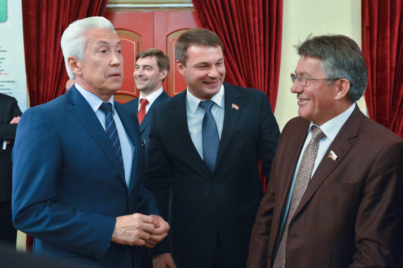 Вчера, 20 сентября, в Амурской области состоялась торжественная инаугурация избранного губернатора региона Александра Козлова. На церемонию вступления амурского главы в должность приехала влиятельная делегация депутатов Госдумы и сенаторов. Среди гостей были два вице-спикера Госдумы. Один из них — зампред нижней палаты парламента, руководитель думской фракции «Единой России» Владимир Васильев. Второй — зампред Госдумы, заместитель председателя фракции «Единой России» Сергей Железняк. Также он занимает должности заместителя Секретаря генерального совета ЕР и главы Межрегионального координационного совета партии. Кроме того, поздравить амурского губернатора приехал председатель думского комитета по федеративному устройству и вопросам местного самоуправления, являющийся еще одним руководителем Межрегионального координационного совета «Единой России» Виктор Кидяев.