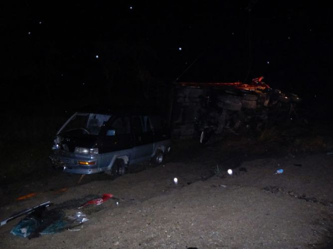 Предварительно установлено, что водитель автомобиля ISUZU GIGA вынужден был остановить машину из-за возгорания колеса. Остановившись на правой обочине проезжей части, водитель вызвал пожарный расчет. Во время тушения автомобиль прибывшего пожарного расчета находился также на правой обочине дороги, при этом были включены проблесковые маячки, ближний свет фар и габаритные огни. Через некоторое время водитель самосвала марки HOWO, двигаясь по этой же полосе, не выбрал безопасную скорость движения и врезался в пожарную машину. Автомобиль от удара перевернулся. Самосвал выбросило на встречную полосу движения и он врезался в микроавтобус, который двигался навстречу. В результате ДТП погиб мужчина 1987 года рождения. Предварительно сообщается, что он находился на обочине. Больше о личности погибшего ничего неизвестно, также пока не сообщается, водителем или пассажиром какой машины он был.