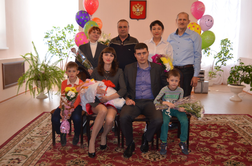 Почти все главные события в жизни семьи Пискун связаны с Тындой. Здесь родился папа большого семейства – Игорь. 12 лет назад в этом же ЗАГСе он сыграл свадьбу с Натальей. В 2005 и 2009 годах она родила ему двух сыновей – Андрея и Кирилла. Поздравить семьи с прибавлением пришли родители Игоря и Натальи.