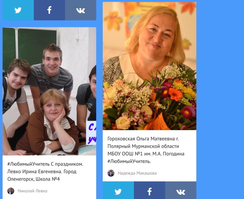 Все опубликованные материалы автоматически попадают на интерактивную ленту проекта «Любимый Учитель» на официальном сайте Минобрнауки России (ft.snwall.ru). Наиболее интересные фотографии будут представлены на экранах в Государственном Кремлевском Дворце во время проведения праздничного концерта.