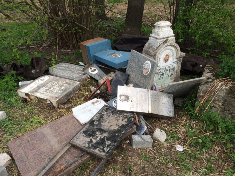 В отношении неустановленных лиц возбудили уголовное дело по части 1 статьи 244 УК РФ «Повреждение или осквернение мест захоронения, надмогильных сооружений».